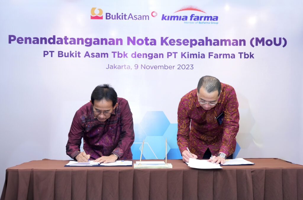 Jakarta, beritamuaraenim.com – PT Bukit Asam Tbk (PTBA) dan PT Kimia Farma Tbk (KAEF) melakukan penandatanganan Nota Kesepahaman (Memorandum of Understanding) untuk menjajaki kerja sama di bidang farmasi dan layanan kesehatan.