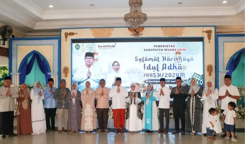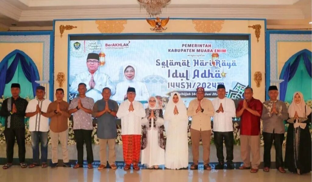Pada kesempatan itu, Pj. Bupati mengucapkan selamat merayakan Hari Raya Kurban kepada seluruh masyarakat Bumi Serasan Sekundang serta mengajak mendoakan 395 jemaah haji Kabupaten Muara Enim yang sedang beribadah di Tanah Suci.