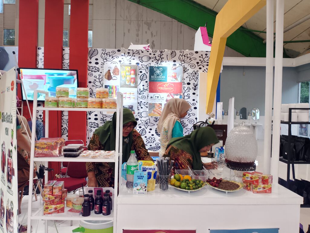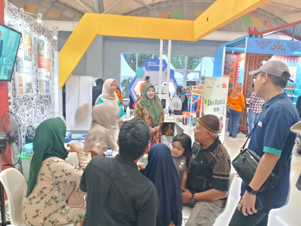 Produk-produk yang dipamerkan, di antaranya minuman kesehatan dari rosella, batik kujur, produk olahan kopi, tas songket, dan berbagai kerajinan tangan.