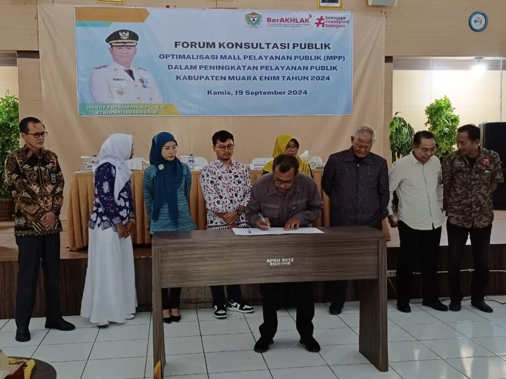 MuaraEnim, beritamuaraenim.com – Guna peningkatan pelayanan publik, Pemerintah Kabupaten (Pemkab) Muara Enim melalui Dinas Penanaman Modal Perizinan Terpadu Satu Pintu (DPMPTSP) dan Bagian Organisasi menggelar kegiatan Forum Konsultasi Publik dengan tema Optimalisasi Mall Pelayanan Publik (MPP) di Gedung Serba Guna RSUD HM Rabain Muara Enim, pada Kamis (19/9/2024).