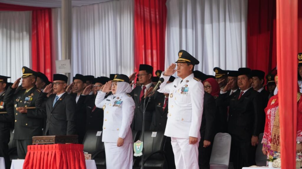 MuaraEnim, beritamuaraenim.com – Peringatan Hari Ulang Tahun Republik Indonesia (HUT RI) Ke-80 di Kabupaten Muara Enim berlangsung khidmat dan penuh semangat. Bupati Muara Enim Edison bertindak sebagai Inspektur Upacara memimpin upacara pengibaran duplikat bendera pusaka yang turut diikuti Wakil Bupati Muara Enim Sumarni di Lapangan Merdeka Muara Enim, Minggu (17/8/2025).