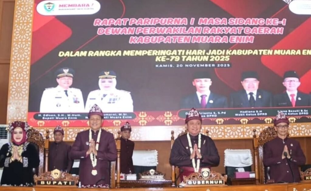 Hidmatnya momen hari jadi Kabupaten Muara Enim yang genap berusia 79 tahun pada 20 November 2025 diawali dengan pelaksanaan Rapat Paripurna DPRD Kabupaten Muara Enim sebagai bentuk refleksi atas perjalanan panjang pembangunan daerah.