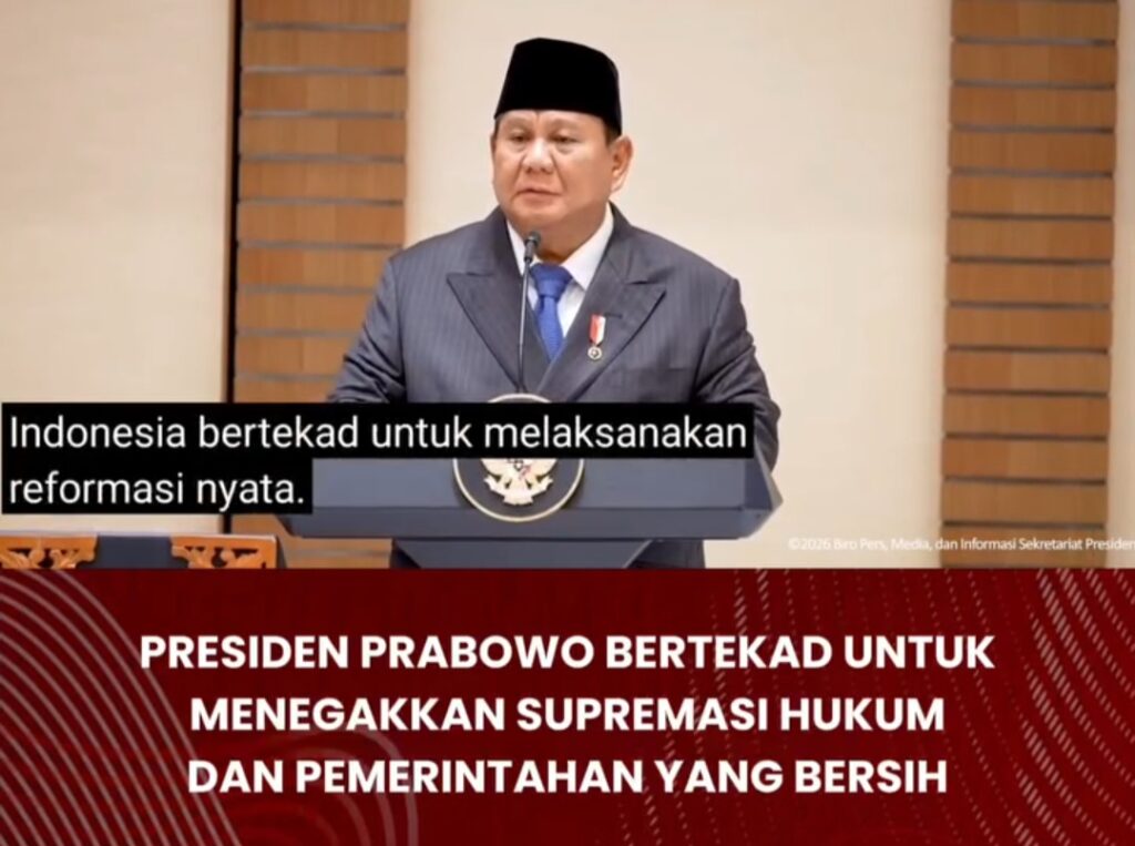 Headline Supremasi Hukum Akan Terus Ditegakan Presiden Prabowo beritamuaraenim.com April 19, 2026 1 min read Jakarta, beritamuaraenim.com – Presiden Prabowo Subianto bertekad akan terus menegakan supremasi hukum. Berikut pernyataan lengkap dari Presiden Prabowo Subianto : (*) Tags: presidenprabowosubianto Continue Reading Previous: Diguyur Hujan Kota Muara Enim Terendam Banjir Tinggalkan Balasan Batalkan balasanAlamat email Anda tidak akan dipublikasikan. Ruas yang wajib ditandai *Komentar * Nama * Email * Situs Web Simpan nama, email, dan situs web saya pada peramban ini untuk komentar saya berikutnya. Related Stories Diguyur Hujan Kota Muara Enim Terendam Banjir 1 min read Headline Diguyur Hujan Kota Muara Enim Terendam Banjir April 17, 2026 Demonstrasi Di KPK “Tembak” Bupati Edison Dan Wakilnya 1 min read Headline Demonstrasi Di KPK “Tembak” Bupati Edison Dan Wakilnya April 15, 2026 Presiden Prabowo Ucapkan Selamat Idul Fitri 1447 Hijriah 1 min read Headline Presiden Prabowo Ucapkan Selamat Idul Fitri 1447 Hijriah Maret 23, 2026